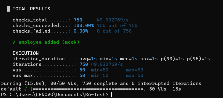 Working with k6 helped me understand performance testing from a practical perspective and gave me the confidence to analyze real-world system behavior.